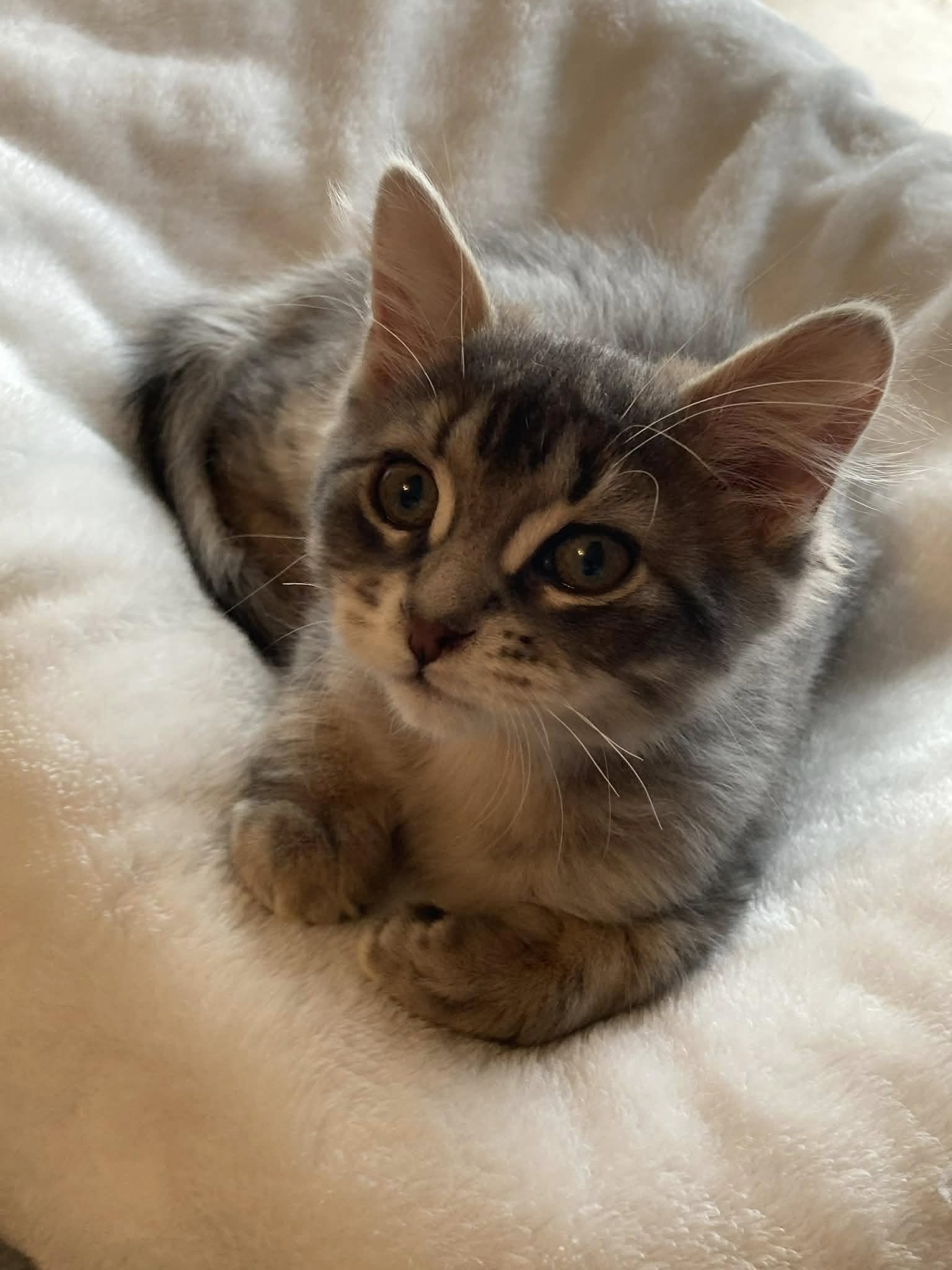 Molly est une petite Tabby grise à poil semi-long. C’est une chatte qui se montre timide au départ mais un fois en confiance, elle ne tarde pas à venir sur vos genoux pour des câlins.