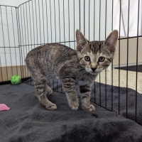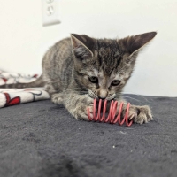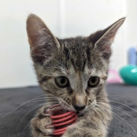 Bien qu’un peu timide, je suis un chaton qui peut facilement s’adapter à plusieurs milieux. Étant actif et enjoué, je dois reconnaitre que c’est assez facile me divertir! Que ce soit une balle, une ficelle ou quoi que ce soit, c’est impossible pour moi de résister, j’adore jouer! Mon côté curieux m’incite à prendre les devants pour explorer ce qui m’entoure. Avec ma personnalité affectueuse, j’ai vraiment hâte d’avoir ma famille à moi afin de quémander des câlins à tout moment!