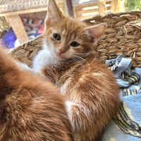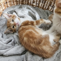 Secouru avec ses quatre frères et sœurs, nous espérons qu’ils pourront être adoptés par deux ou dans des foyers avec un autre chat amical et joueur pour s’assurer qu’ils continuent leur socialisation.