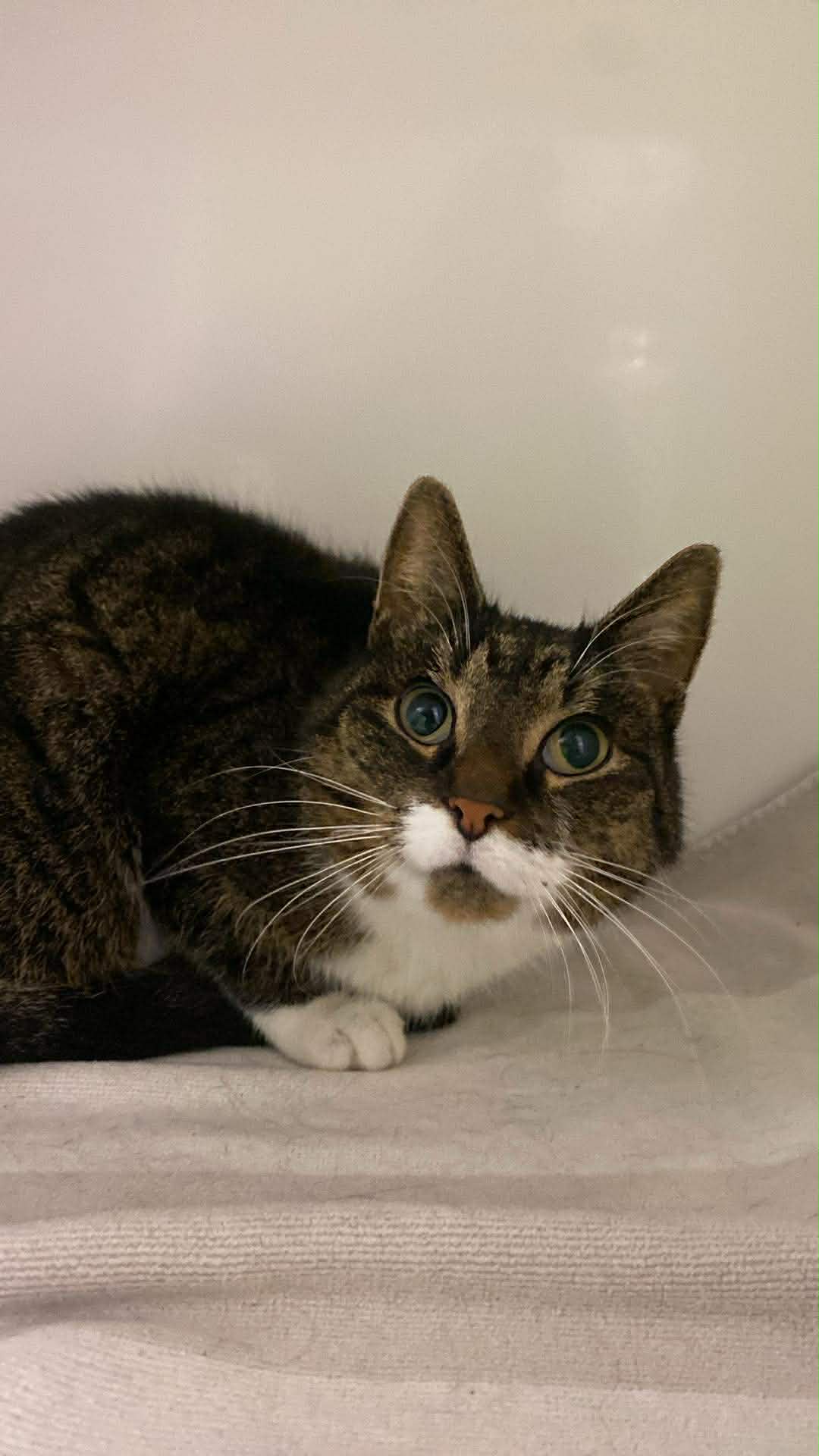 Avec son regard expressif et un brin espiègle, cette féline aime aller chercher ses humains pour jouer, que ce soit avec eux ou avec ses jouets. Elle a l’habitude d’accueillir sa famille au retour du travail, un peu comme un petit chien, pour montrer à quel point elle est heureuse de les voir.