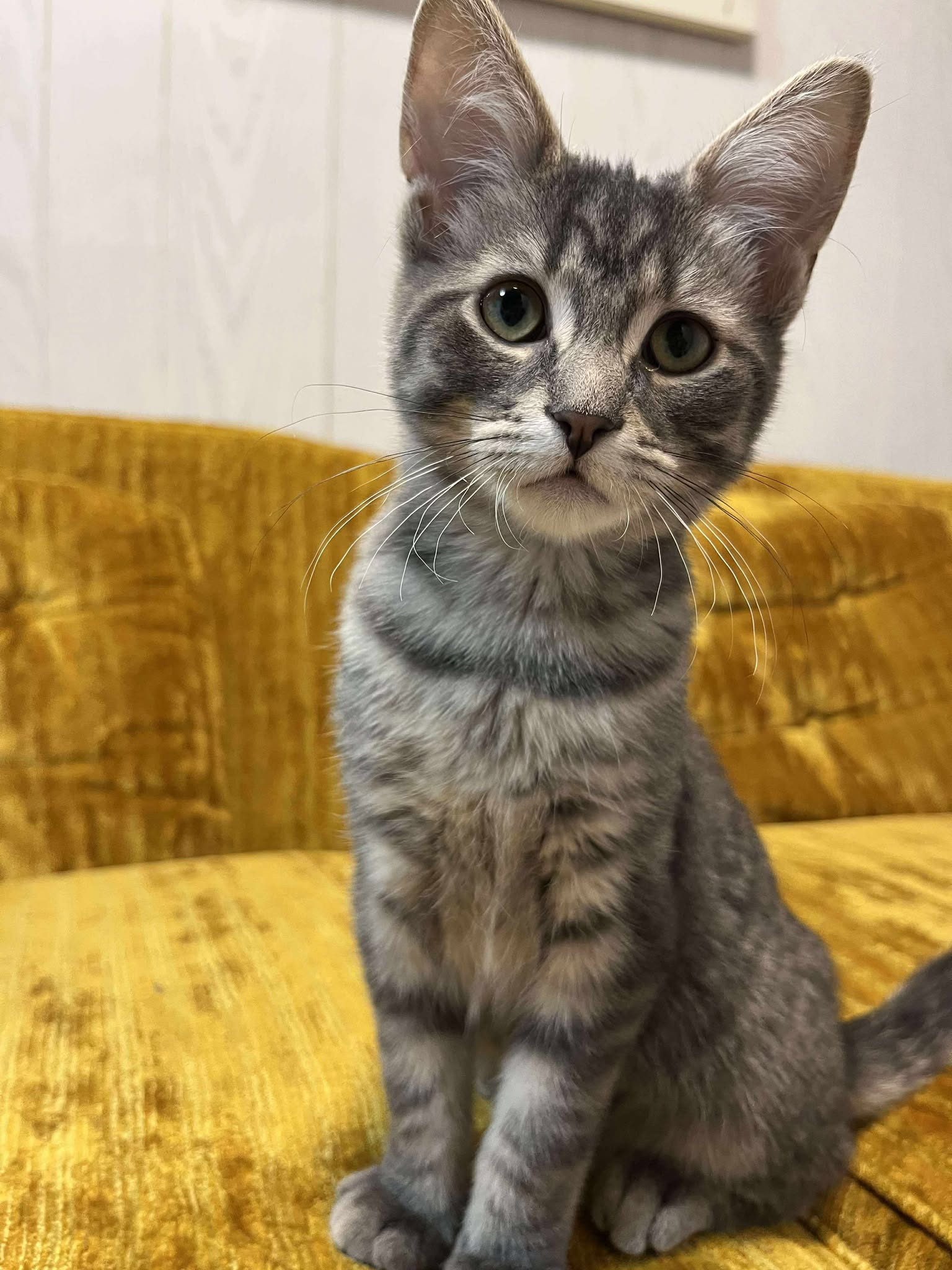 Il est stérilisé, vacciné et micropucé. Il a testé négatif deux fois pour le virus de l’immunodéficience féline (VIF) et pour la leucose féline (FeLV), mais sa mère Portia est porteuse du FeLV. Ainsi, sa famille doit être à l’aise avec cela.
