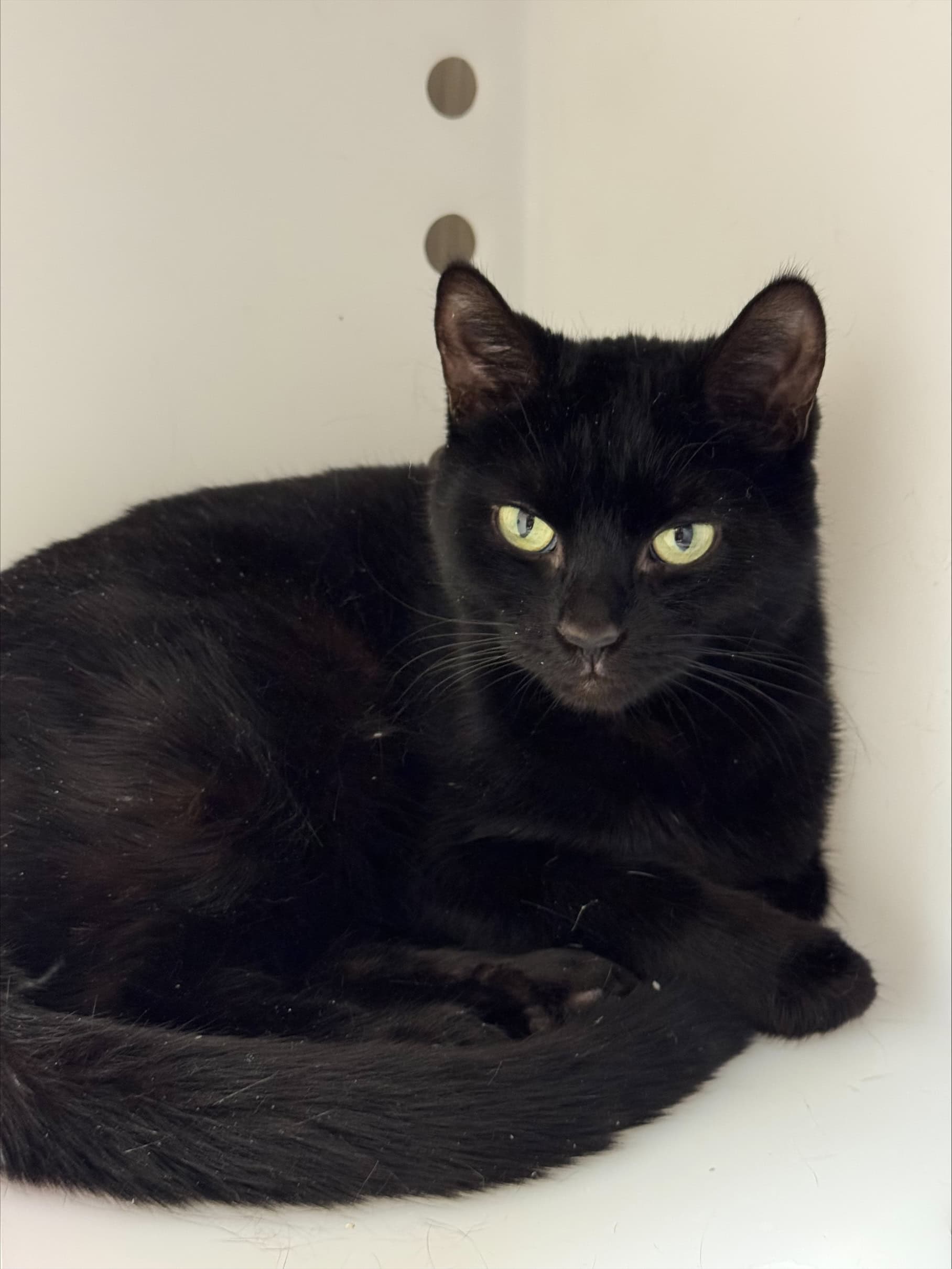 Son nom lui va plutôt bien! Curieuse et pleine de personnalité, elle aime beaucoup la compagnie des humains. Affectueuse, elle n’hésite pas à venir chercher l’attention, à ronronner et même à montrer sa bedaine lorsqu’elle est à l’aise.