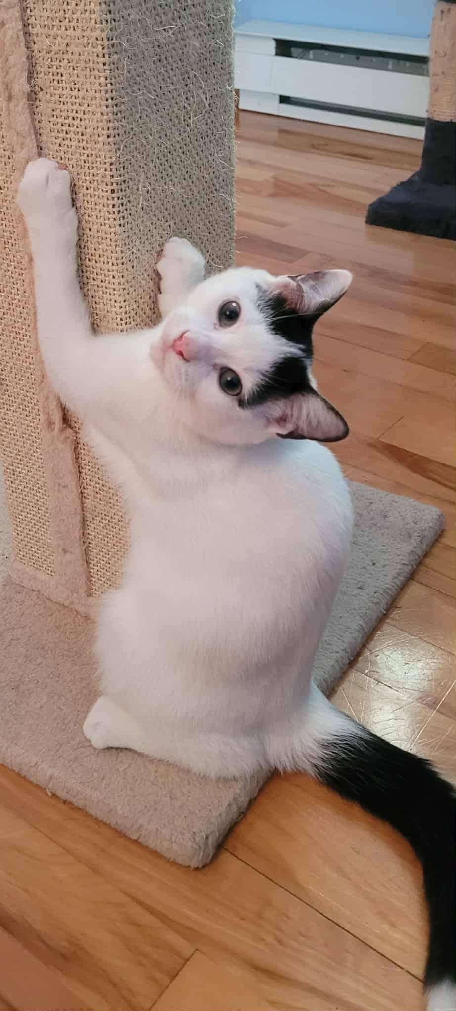 Nuage n’a aucune maline et il est habitué de vivre avec plusieurs chats.