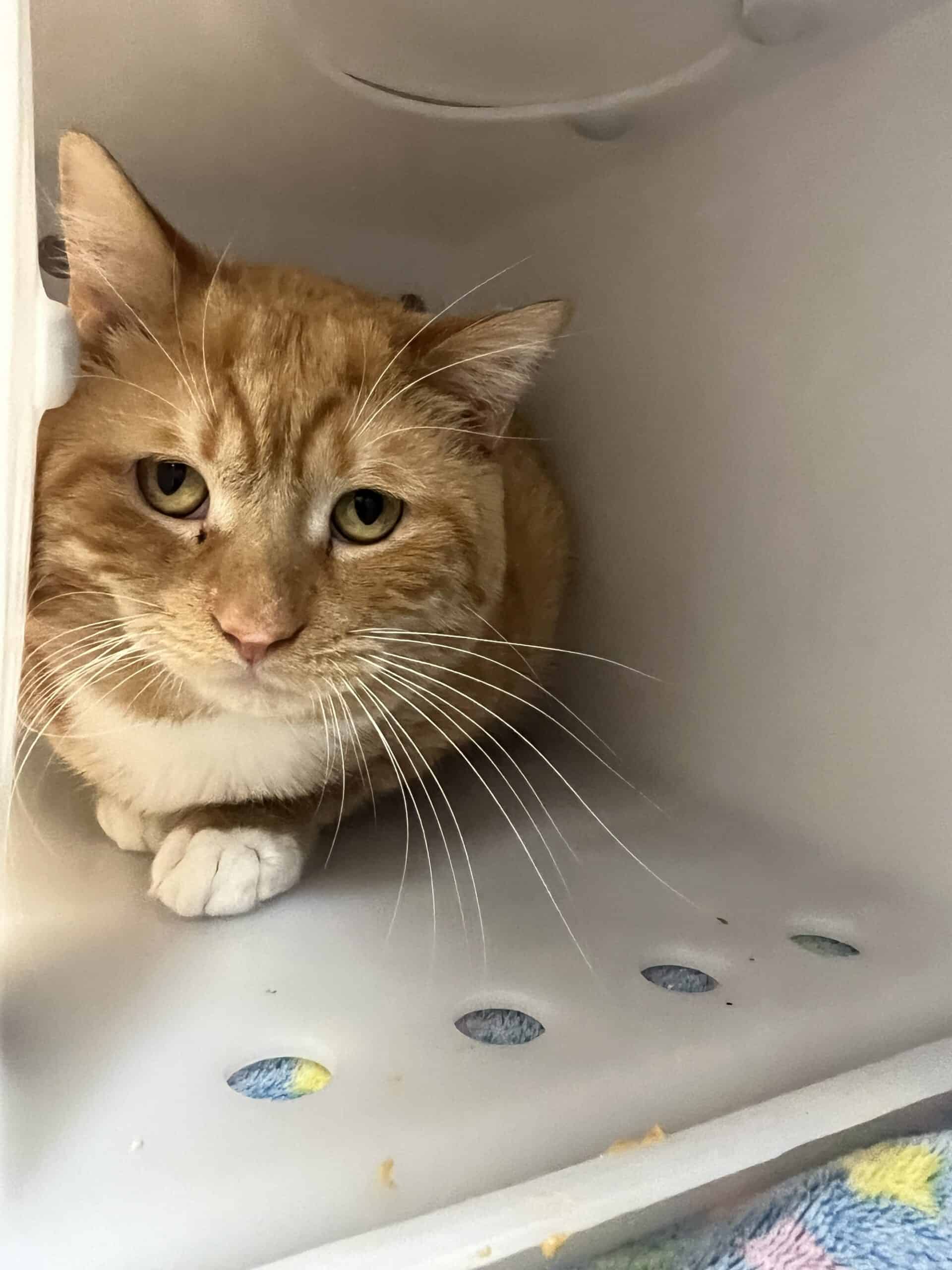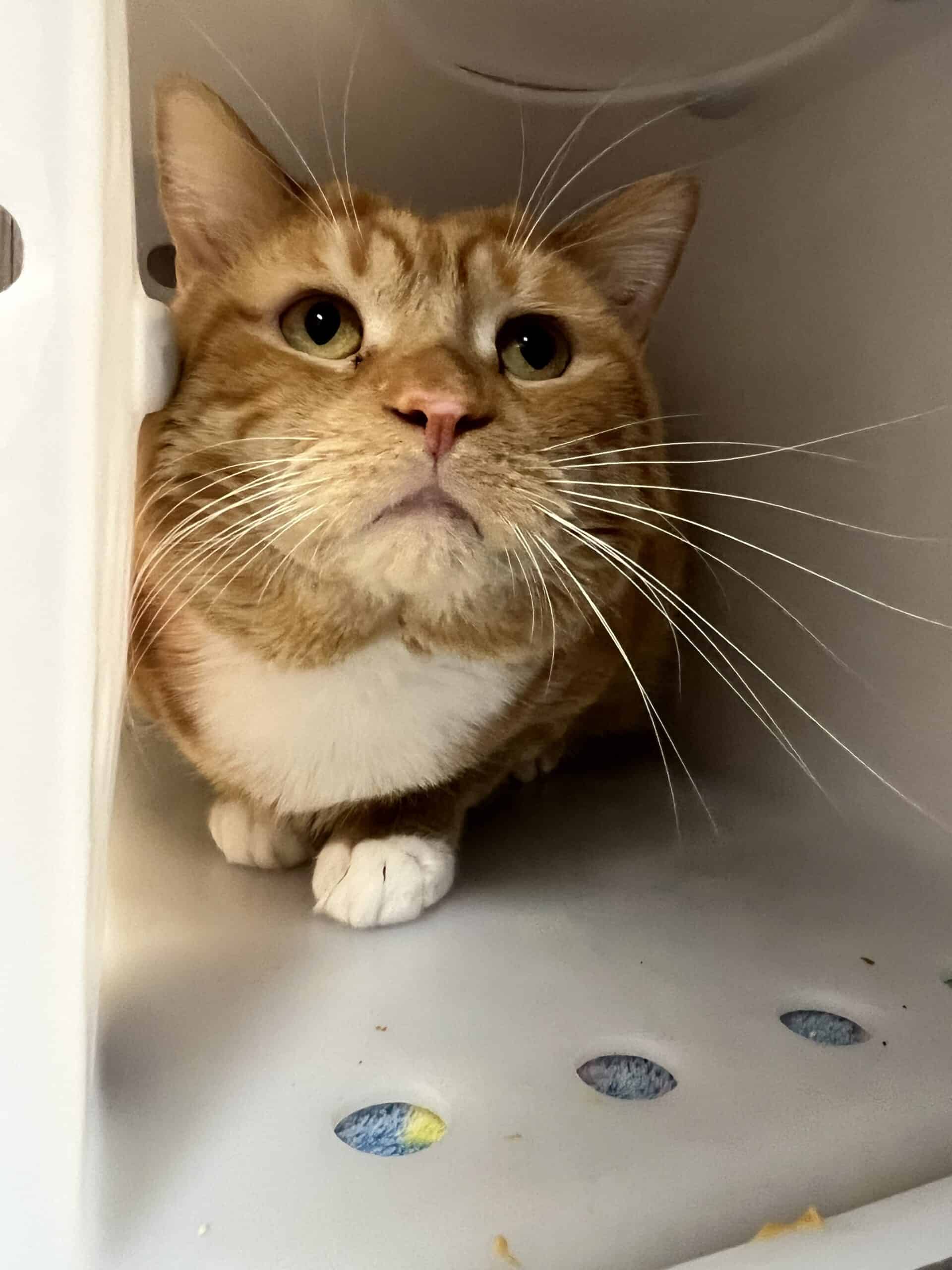 Nugget a de magnifiques yeux de « chat botté ». Un peu nerveux au départ, ce petit cœur a surtout besoin de douceur et d’amour pour s’ouvrir.