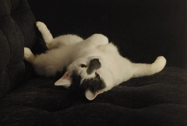 C’est un vrai petit gourmand qui mange très bien, adore jouer avec ses jouets et trouve toujours les positions les plus cocasses pour dormir sur le divan.