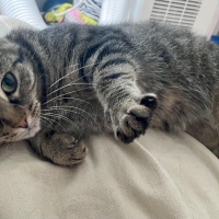 Elle se laisse prendre et caresser quelques minutes dans vos bras pour regarder par la fenêtre. Malgré qu’elle soit apeurée par la présence des humains, Olivia est une petite chatte qui démontre beaucoup de douceur qui vous fera les yeux doux. Ah oui… et elle adore se faire grattouiller à la base de la queue.