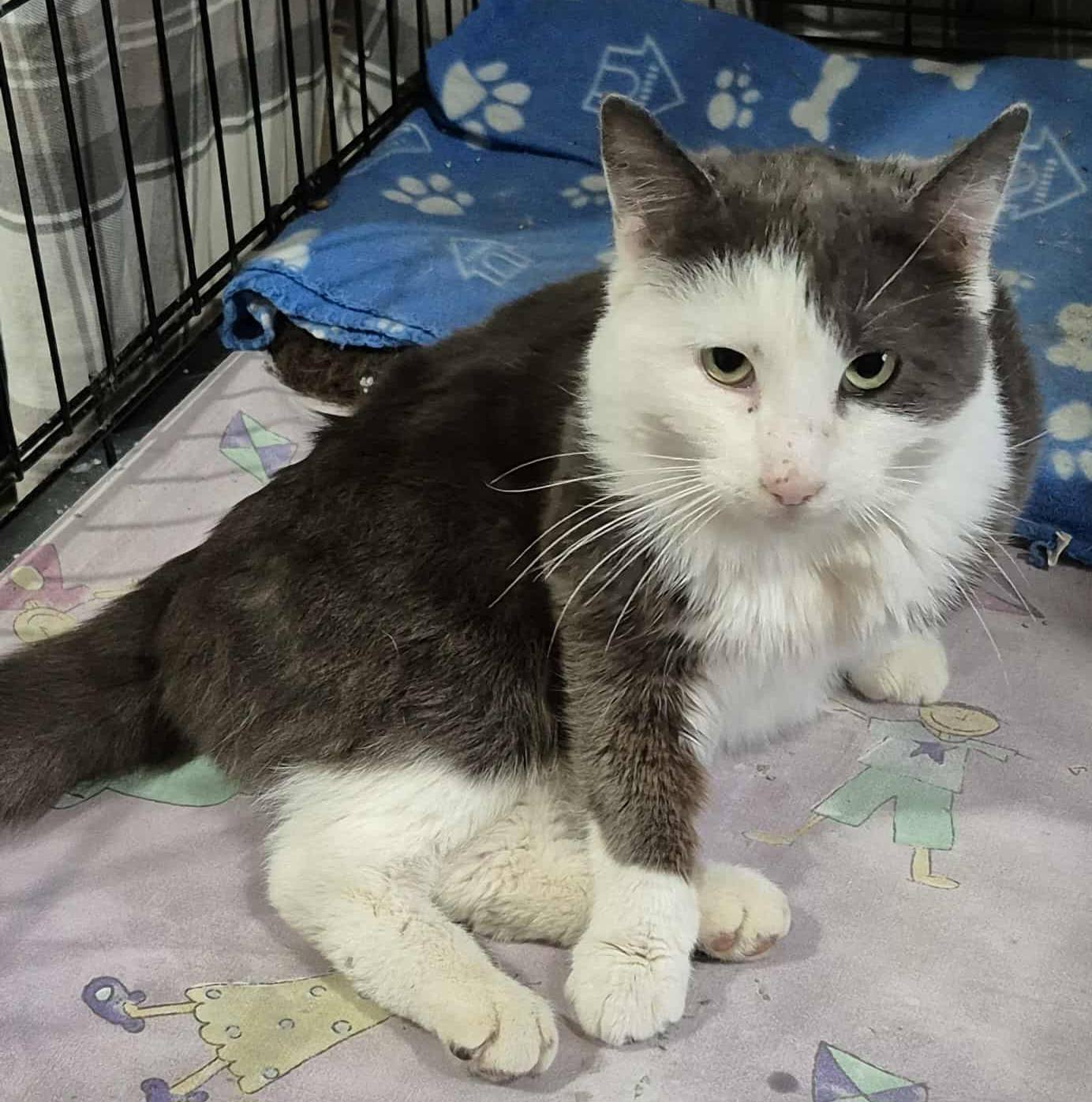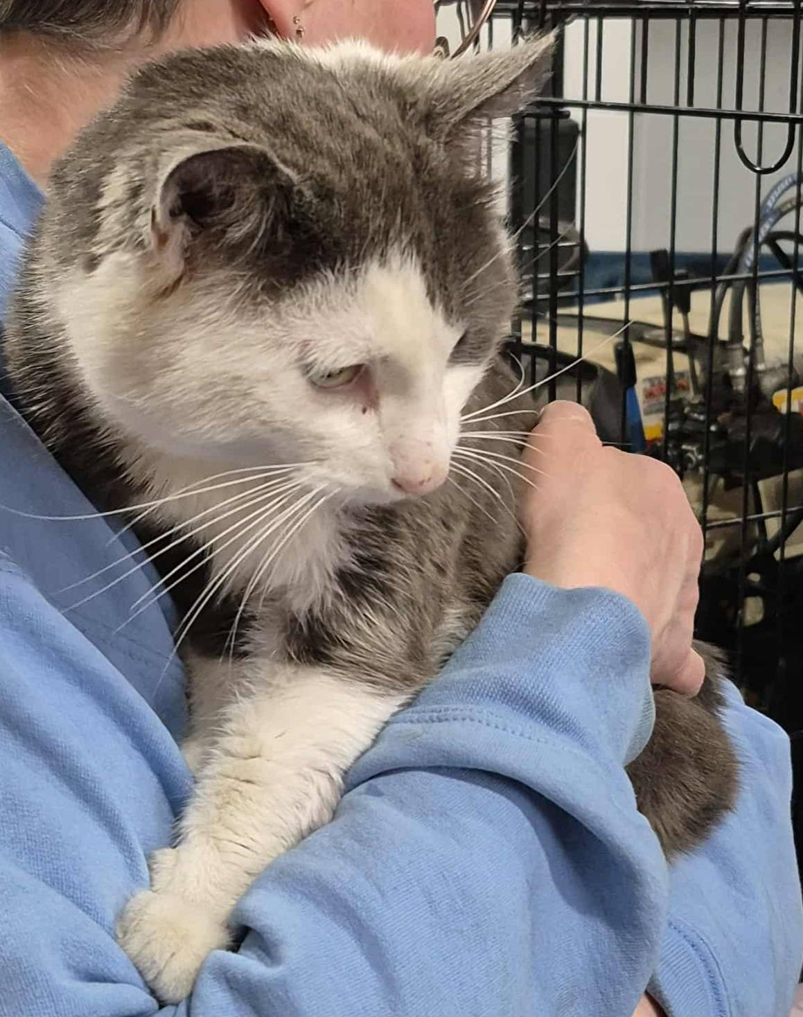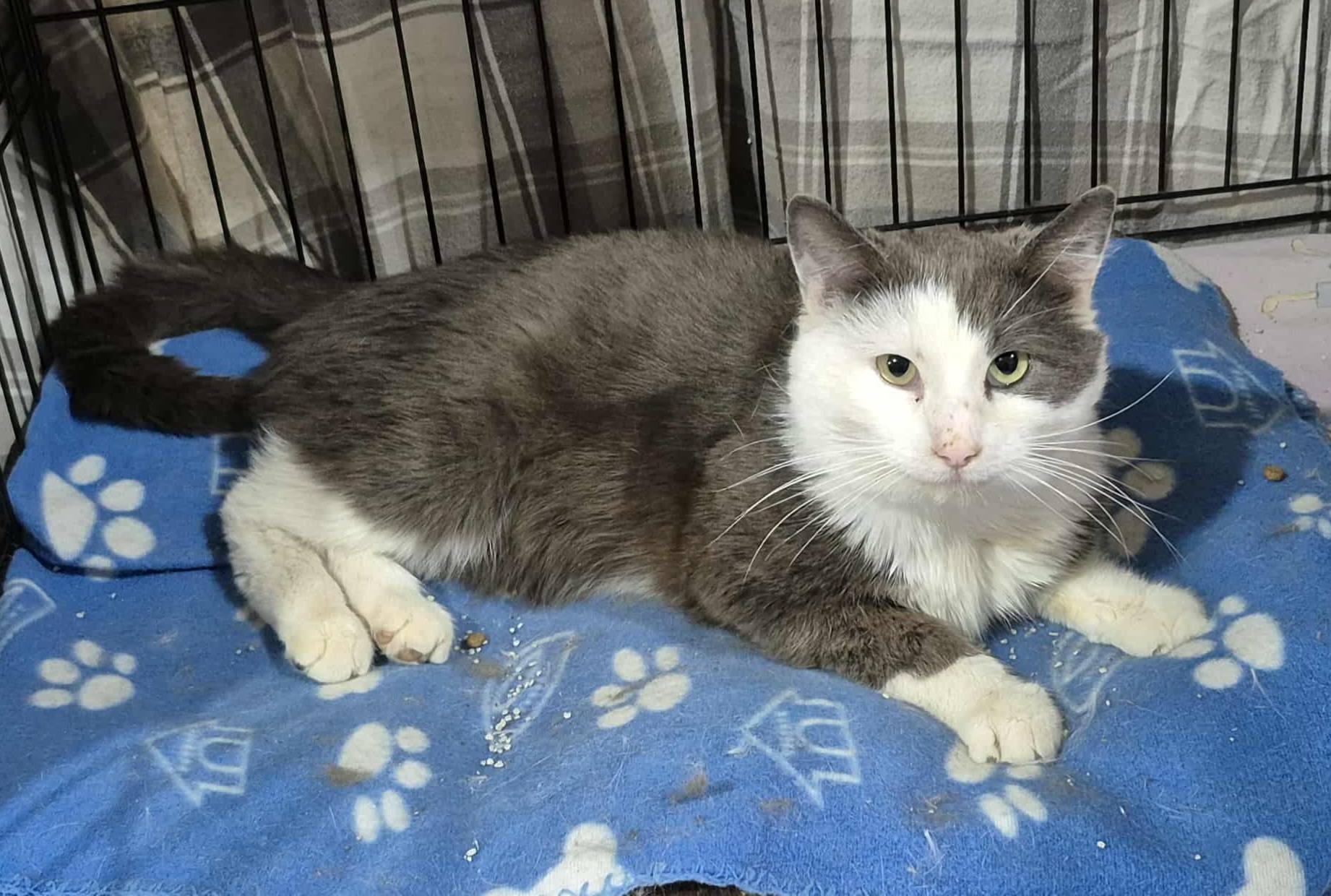 Oscar est gris et blanc à...