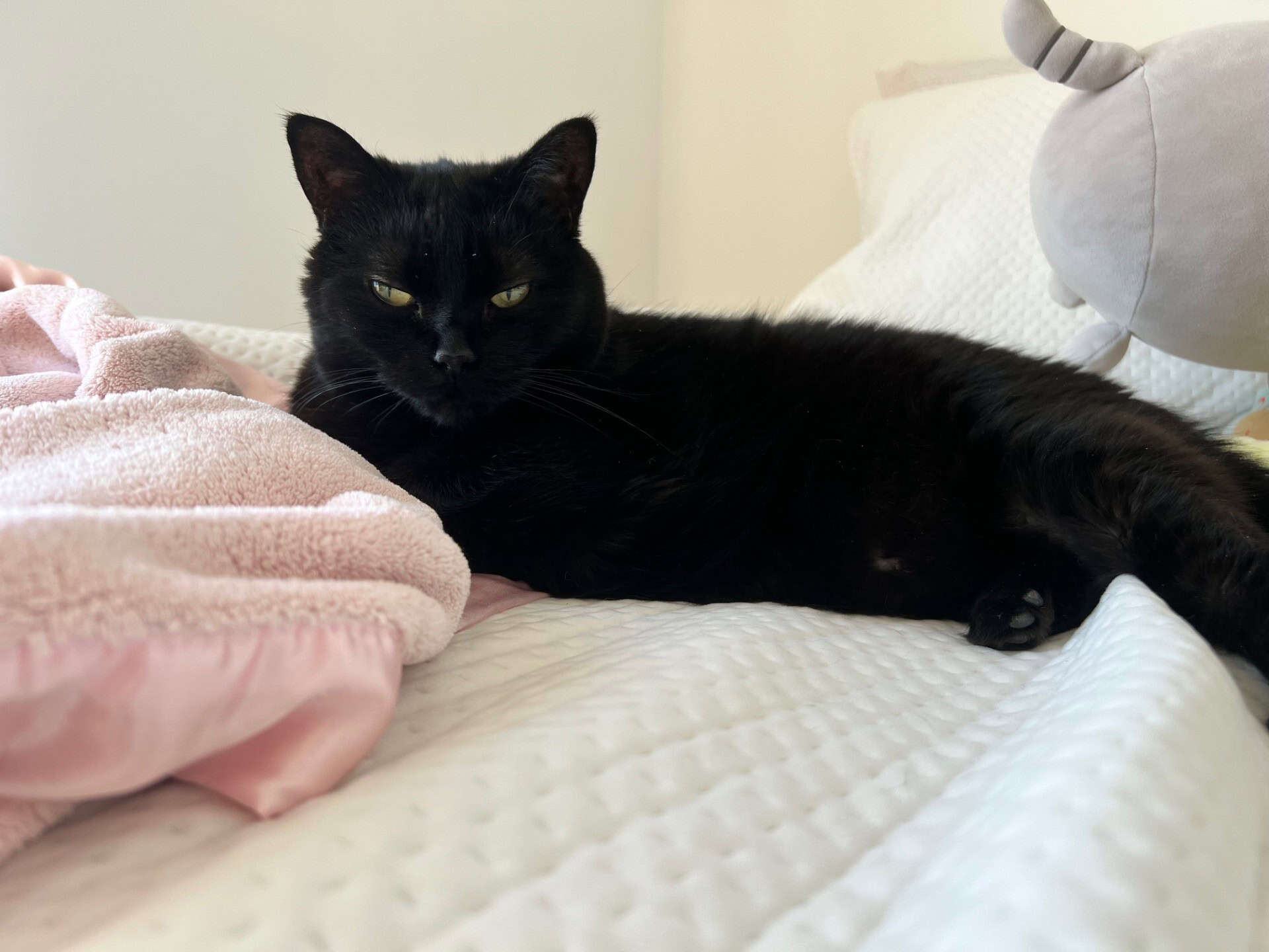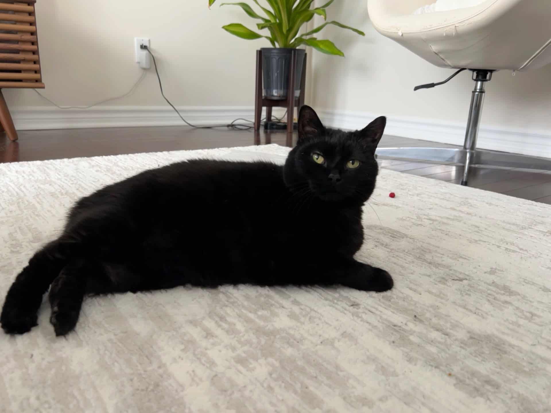 Indépendante de nature, elle n’est pas la plus colleuse, mais elle aime profondément la présence de ses humains. Son petit bonheur est simplement d’être dans la même pièce qu’eux, à partager le quotidien à sa façon.
