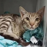 Un beau mâle possiblement croisé Bengal de 1 an. La dame qui s’occupait de lui n’avait malheureusement plus de temps à lui consacrer.