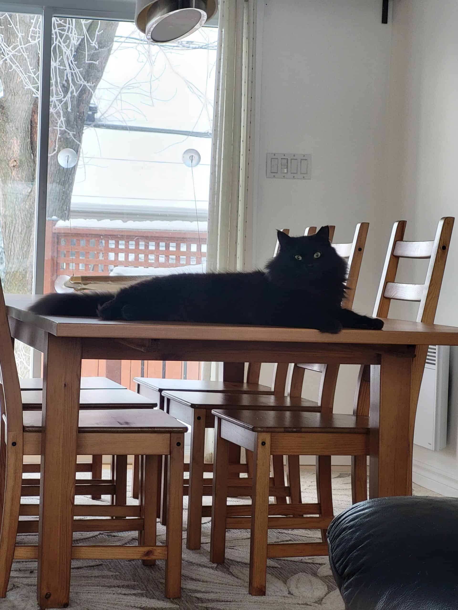 Ce beau garçon se laisse surtout apprivoiser… par l’estomac ! Grand amateur de canne, il arrive aussitôt qu’on ouvre le frigo. À l’heure du repas, il est toujours de bonne humeur et prêt à partager ce moment avec vous.