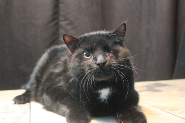 Je suis un beau chat de 4 ans qui pèse 16,20 lbs. Il me manque l’oeil gauche depuis la naissance, mais je suis comme n’importe quel autre chat! Je crois même que j’ai plus de charme avec seulement un oeil! Je suis sociable avec les gens. Je suis très doux. J’aime les autres animaux. Je suis au refuge à cause d’allergies. Venez me voir!