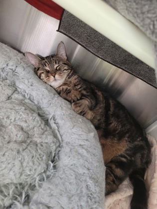 Elle est bien sûr stérilisée, vaccinée, vermifugée, micropucée et à la recherche d’une gentille famille pour la vie!