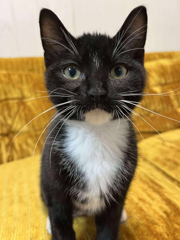 Plein de vie, curieux et espiègle, il déborde d’énergie et adore s’amuser à courir après les jambes et les pieds de ses humains. C’est un petit clown attachant qui aime être au centre de l’attention !