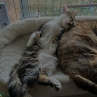 Je suis le moins câlin de ma fratrie, montrant mon affection à ma manière comme en se frottant contre vos jambes ou en restant silencieusement près de vous. Cependant, je commence doucement à aimer de plus en plus me faire flatter. J’aime explorer mon environnement et je suis toujours partant pour une partie de jeu.