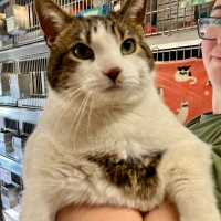 Poupée est une chatte parfaite! La jolie damoiselle dodue est véritablement un cœur sur 4 pattes. Avec son attrayant pelage tabby et blanc, ses captivants yeux au regard tendre et candide et sa gentillesse exemplaire, la belle cocotte mérite qu’on lui trouve une famille aimante pour la chérir pour toujours.