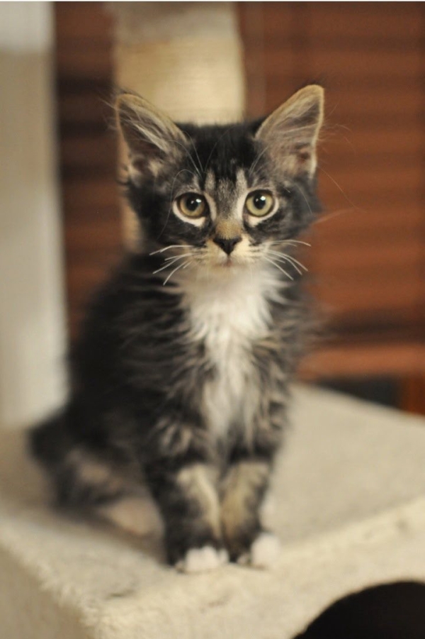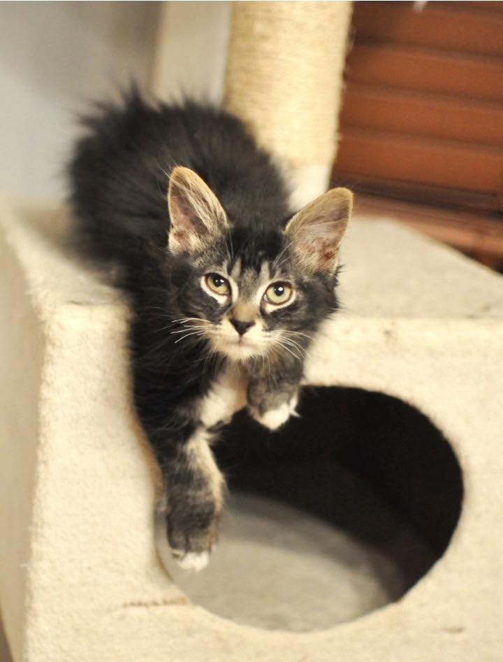 Elle aime se faire flatter, est joueuse à ses heures et adore dormir dans l’arbre à chat et sur les lits. U