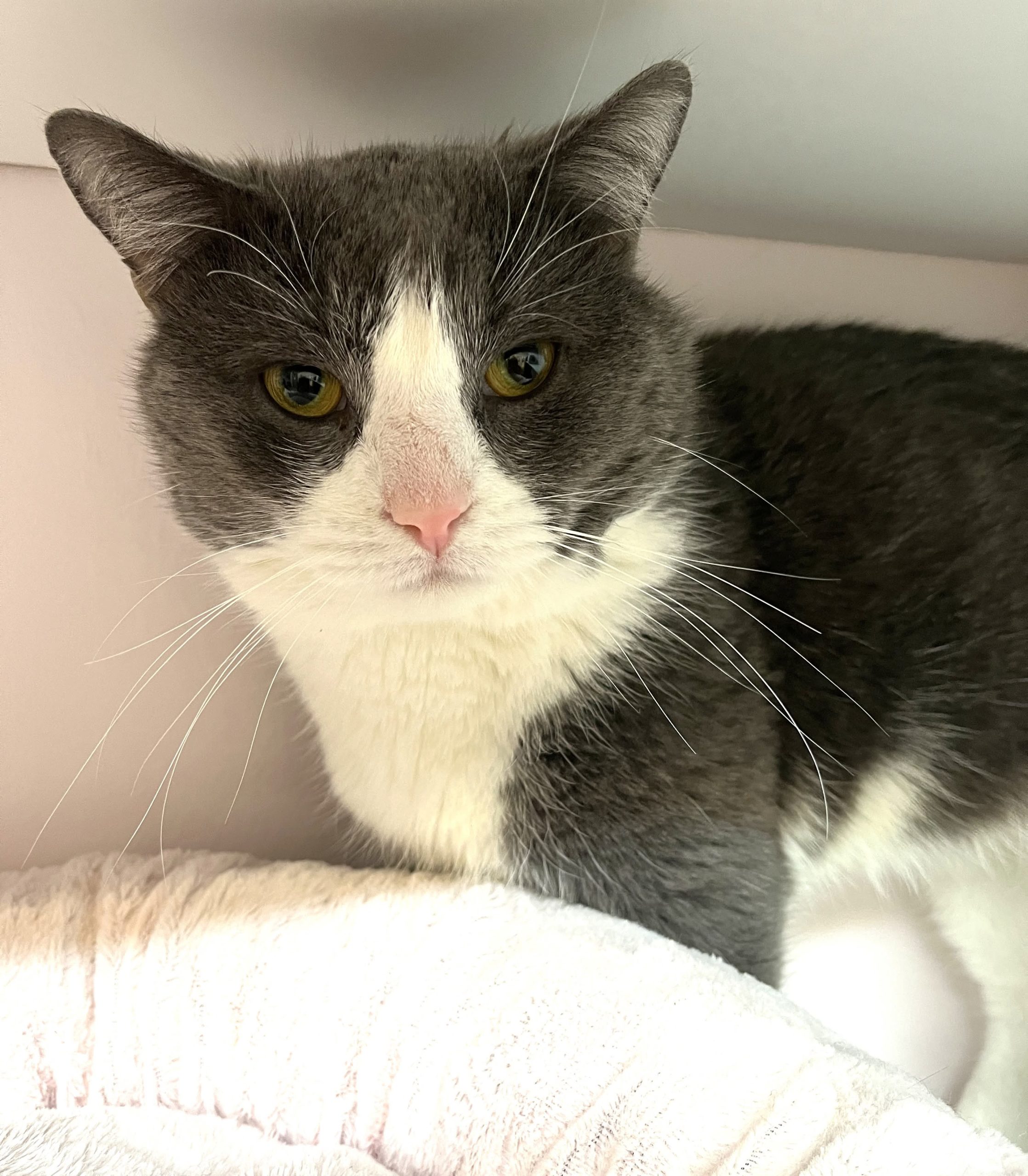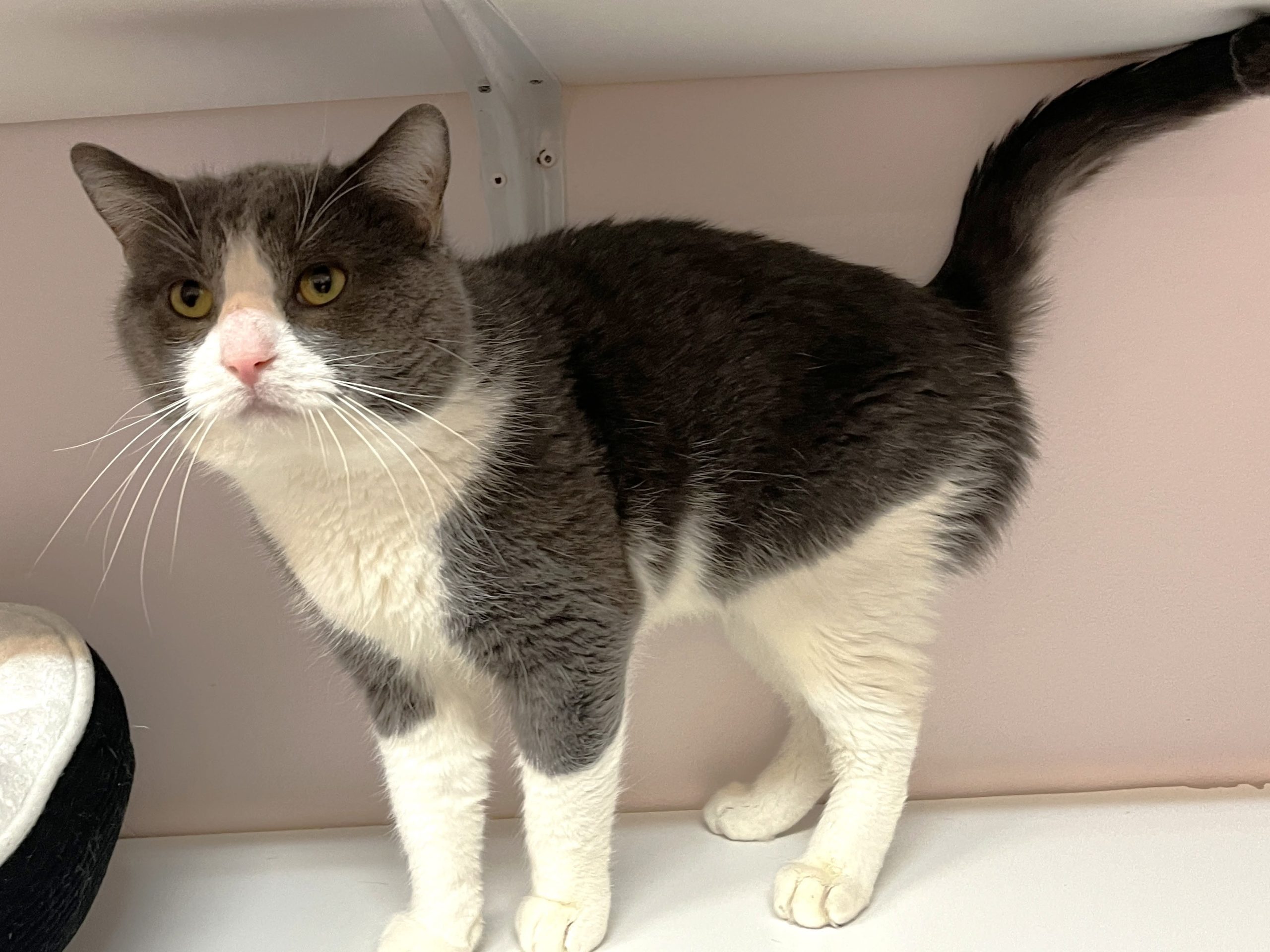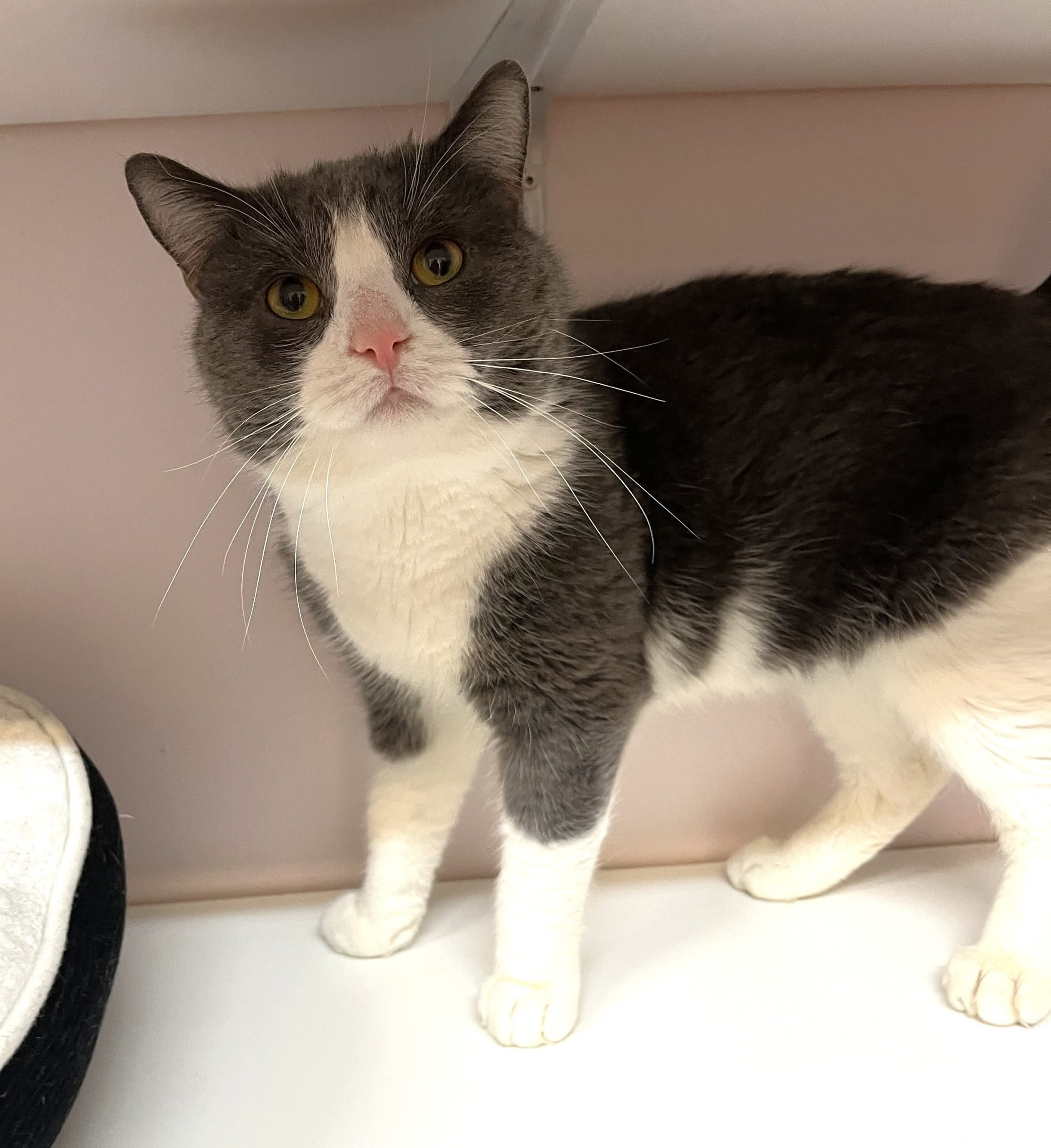 Ragnar saura certainement vous charmer avec son look de « bad-boy » – il possède un attrayant pelage gris et blanc, de grands yeux verts au regard empreint de tristesse et d’inquiétude et un adorable nez rose-bonbon. Trouvé transi par le froid sur le bord d’une route passante, non stérilisé, amaigri, le pelage sale et des blessures au visage, de bonnes gens l’ont rescapé ainsi que son frère (ou ami) Ivar sinon, ils risquaient de se faire frapper par les voitures. Les deux garçons ont été emmenés au refuge un peu avant Noël 2025 afin de leur offrir une meilleure vie. Nous avons fait la promesse à Ragnar & Ivar de leur trouver chacun un foyer rempli d’amour.