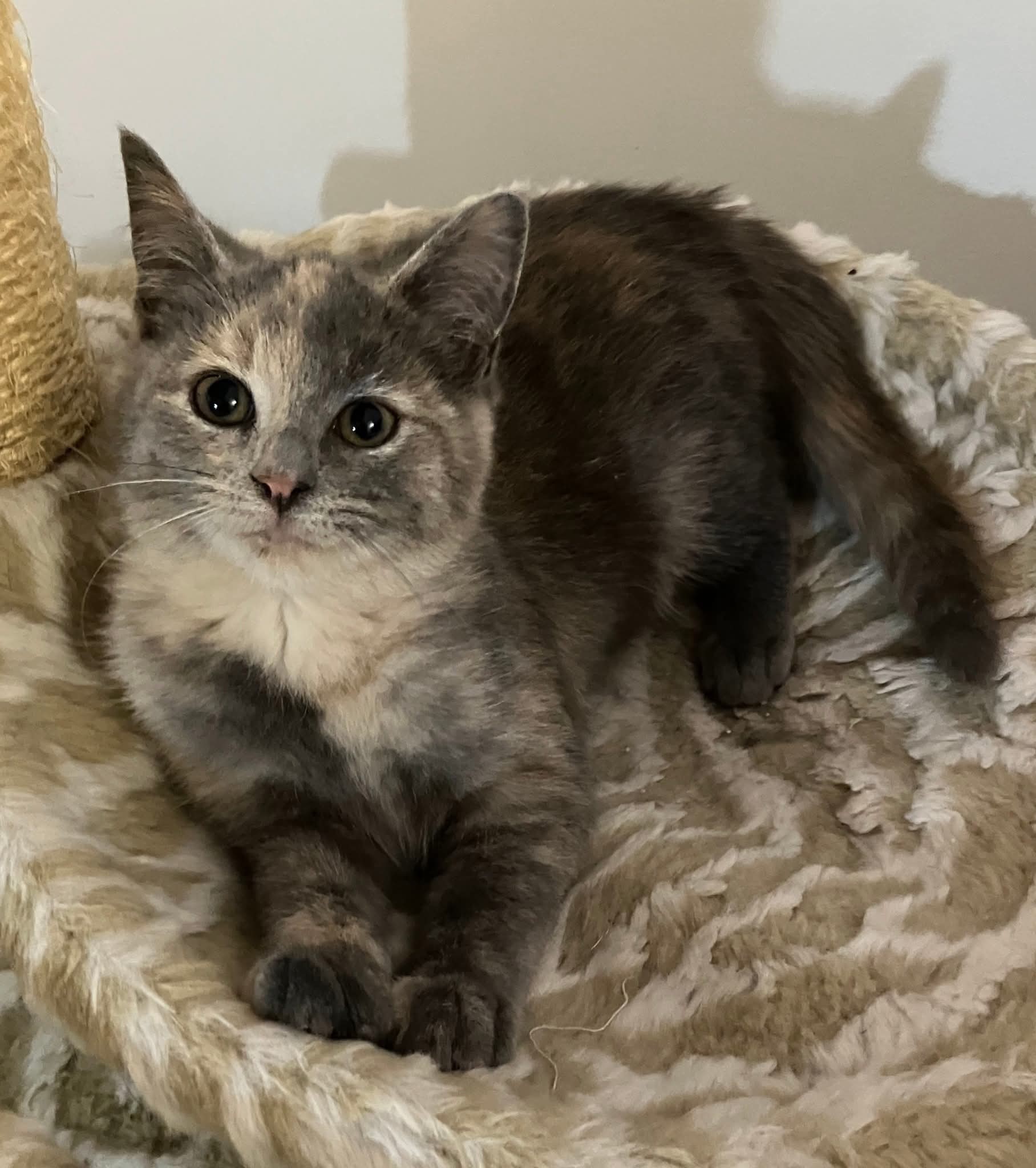 Une adorable petite chatte de 8 mois, blanche et noire, qui a été trouvée errante. Bien qu’elle soit encore très timide et peureuse, elle fait des progrès jour après jour et commence à se sentir plus à l’aise dans son nouvel environnement. Remi adore jouer avec des jouets, surtout si cela implique des moments de complicité avec un autre chat. D’ailleurs, cette petite puce s’entend très bien avec les autres félins et il serait idéal pour elle de trouver une famille qui possède déjà un ou plusieurs compagnons à quatre pattes pour l’aider à se sentir plus en confiance. Un ami félin pourrait vraiment l’encourager à sortir de sa coquille et à s’épanouir. Elle aime aussi les gâteries et c’est un moyen très efficace pour l’apprivoiser petit à petit. Cependant, elle reste assez réservée et préfère un environnement calme, loin du bruit et des mouvements brusques. Remi n’est pas à l’aise avec les enfants, ni avec les chiens, et il est préférable qu’elle soit placée dans un foyer sans ces deux éléments. Elle est plus à l’aise dans un cadre serein, où elle peut évoluer à son rythme. Si vous avez de la patience et un espace tranquille, elle saura, avec le temps, devenir un compagnon affectueux et fidèle. Elle mérite de trouver une famille qui saura lui offrir tout le temps nécessaire pour surmonter ses peurs et s’épanouir en toute sécurité.