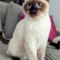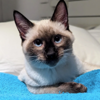 Cela lui ferait très plaisir de vivre avec un autre chat, mais il devra jouer avec lui. Malheureusement, il n’a jamais rencontré de chien, donc il ne sait pas s’ils lui feraient peur ou non. Il n’a jamais été évalué avec des petits animaux, mais avec un bon encadrement ce serait possible. Il est gentil avec tout le monde, donc il pourrait habiter avec des jeunes enfants.