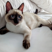 Quand on le prend dans les bras, il devient tout mou comme une poupée de chiffon. Il apprécie les câlins, mais ne ronronne pas. Il est un peu spécial, mais on lui a dit que ça le rendait encore plus unique. Il paraît aussi qu’il est très patient, puisqu’il se laisse couper les griffes sans rien dire. Il est propre et ne cause pas de dégâts à la maison.