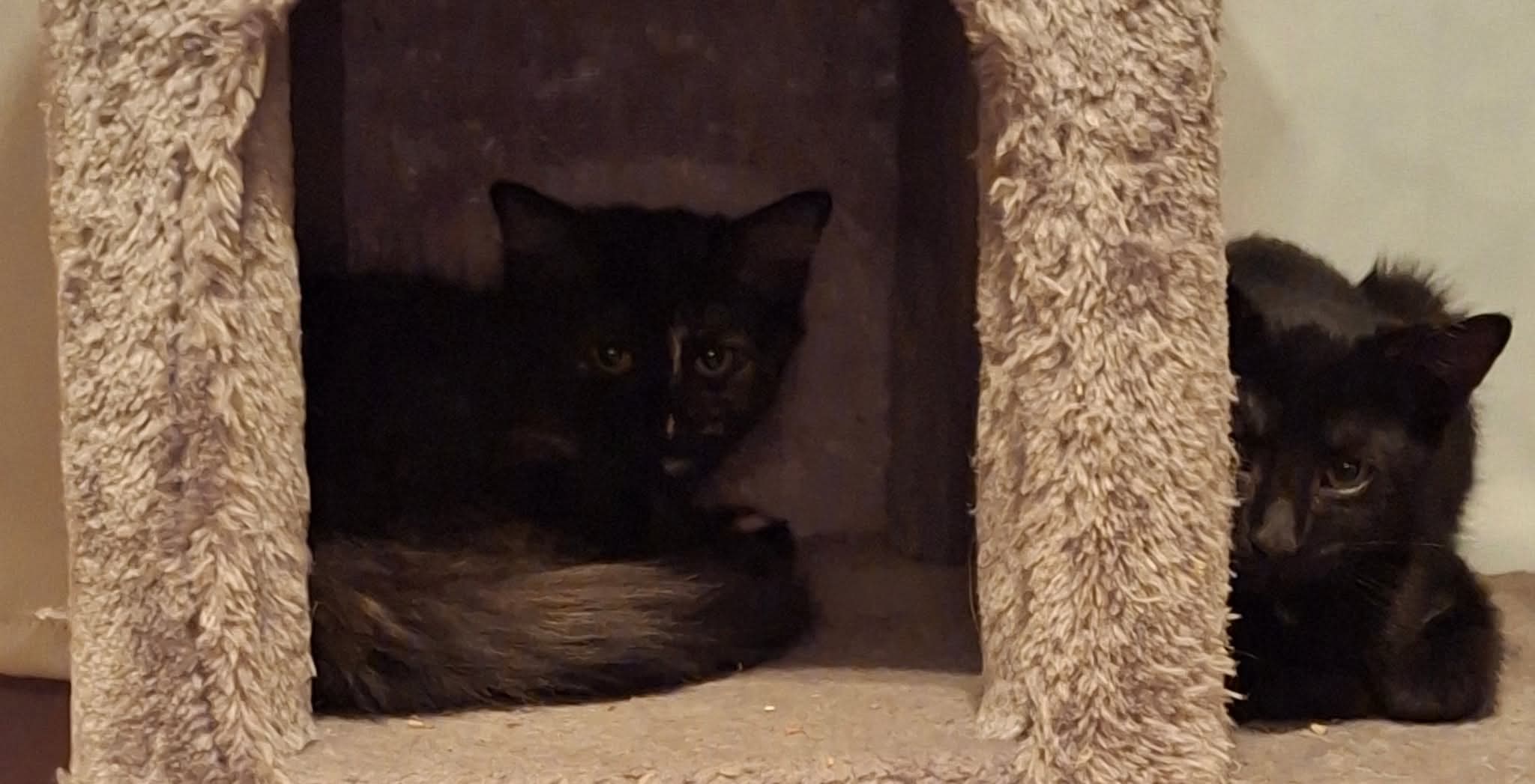 Rocco est noir avec le poil court et Ricotta est de couleur écaille de tortue avec le poil mi-long. Inséparables, ils doivent être adoptés ensemble. Ils miaulent et se cherchent lorsqu’ils sont séparés.