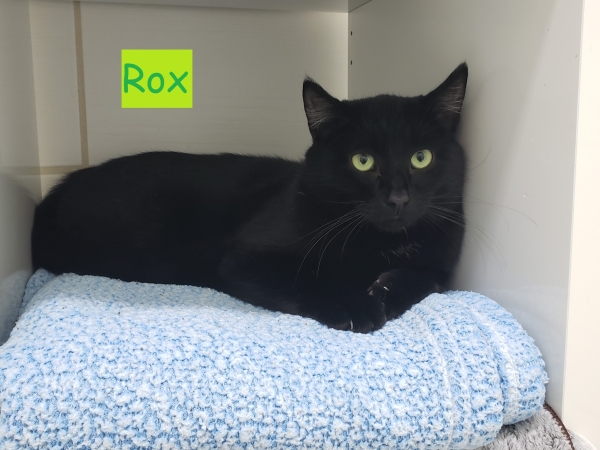 Rox est un chat qu’il faut approcher doucement car cela l’intimide mais une fois à l’aise, il est très affectueux!