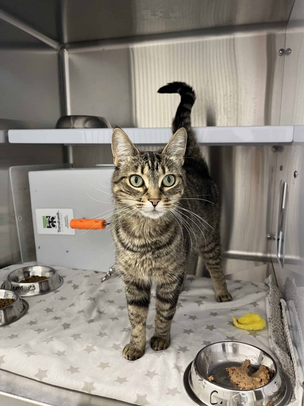 Sociable et affectueuse, elle cherche volontiers la compagnie des humains et adore recevoir des caresses. Pleine d’énergie, elle aime participer à la vie de la maison et partager des moments de jeu ou de tendresse. Avec son tempérament chaleureux et attachant, Rye fera le bonheur d’une famille prête à lui offrir l’attention et l’affection qu’elle mérite.