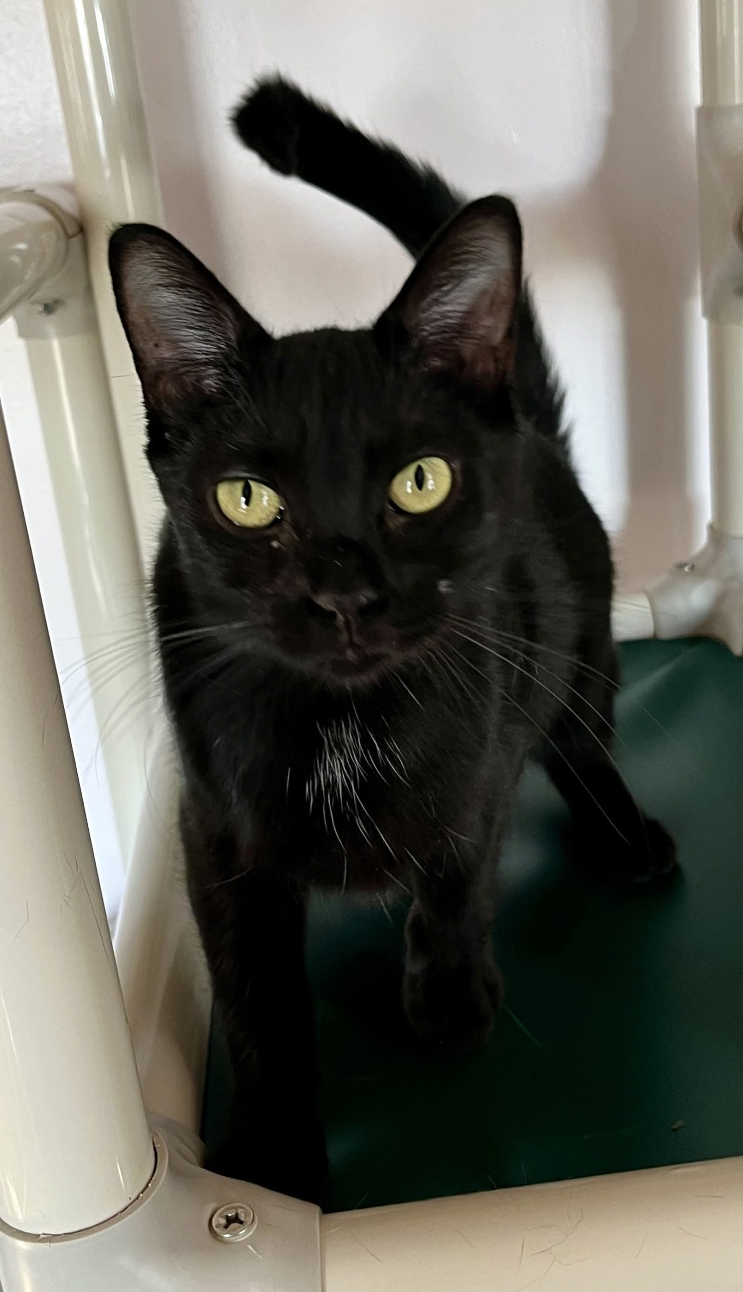 Sachat est un beau garçon en forme, agile et en excellente santé. Il est vraiment admirable avec son élégant pelage noir et blanc, son beau visage avec un adorable nez rose-bonbon et que dire de ses superbes yeux verts étincelants remplis de curiosité et d’intelligence. Ce « canon » félin possède un charme irrésistible et il saura vous épater à coup sûr!