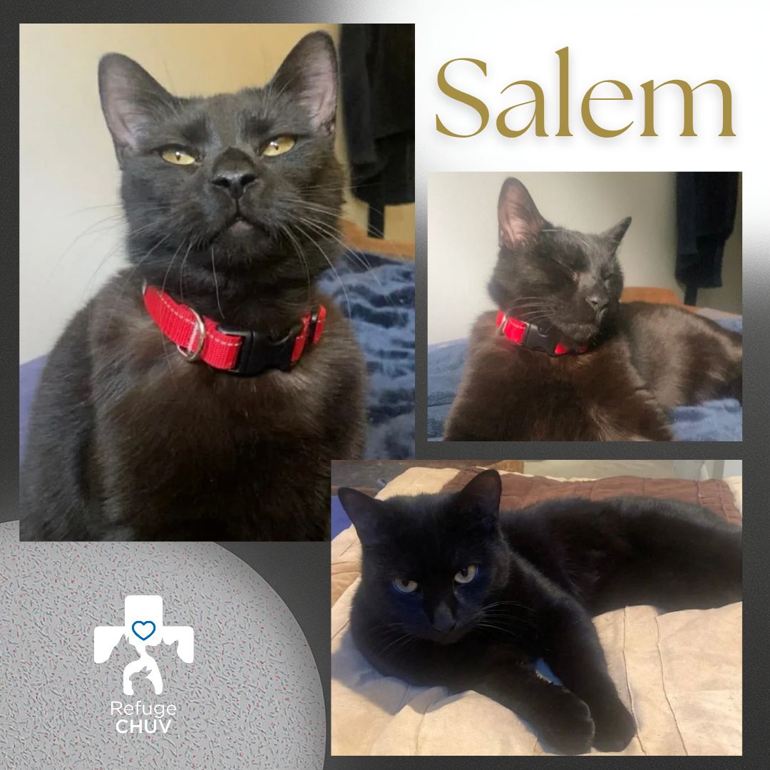 Salem est un grand adolescent au cœur tendre et à l’énergie débordante. Joueur, affectueux et un brin coquin, il met de la vie et des sourires partout où il passe. Il adore les autres chats, respecte leurs limites et ne demande qu’à partager ses jeux… et son amour.
