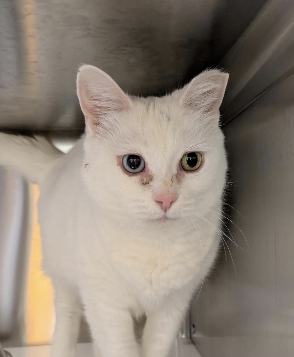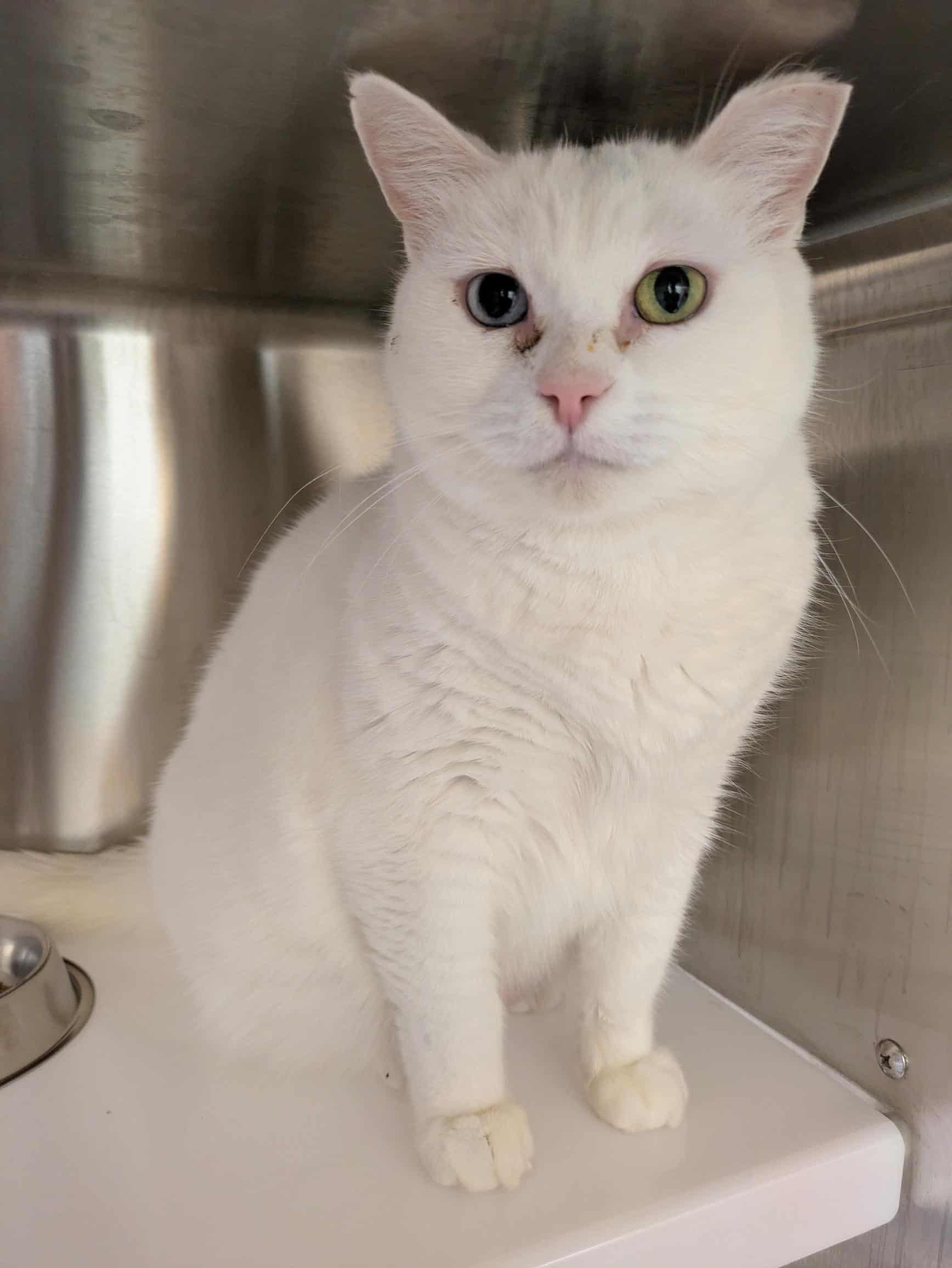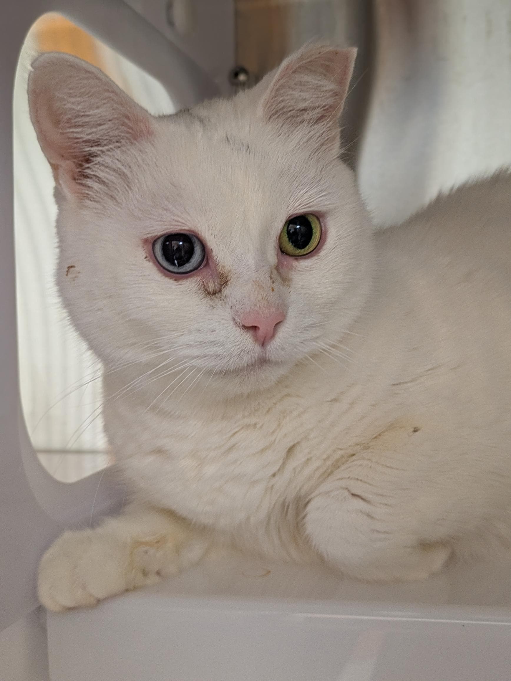 Sally est une belle cocotte âgée de 9 ans, au regard expressif et plein de douceur. Ses yeux sont d’ailleurs hétérochromes ce qui fait son charme. Curieuse de nature, elle aime observer ce qui l’entoure, mais elle reste tout de même réservée et prend le temps de faire confiance. Un environnement calme serait idéal pour favoriser son bien-être.