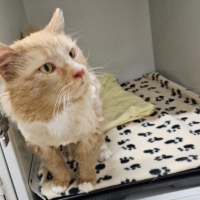 Un joli mâle de type domestique à poil long d’environ 4 ans et qui pèse 4.46kg.