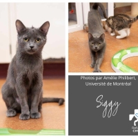 Elle a un petit miaulement adorable quand elle décide qu’elle mérite toute notre attention. Finalement, ne soyez pas surpris, Siggy a tendance à sauter sur les gens ou les escalader et à s’installer sur nos épaules. Elle pourra habiter avec des enfants respectueux ainsi qu’avec des chats et chiens.