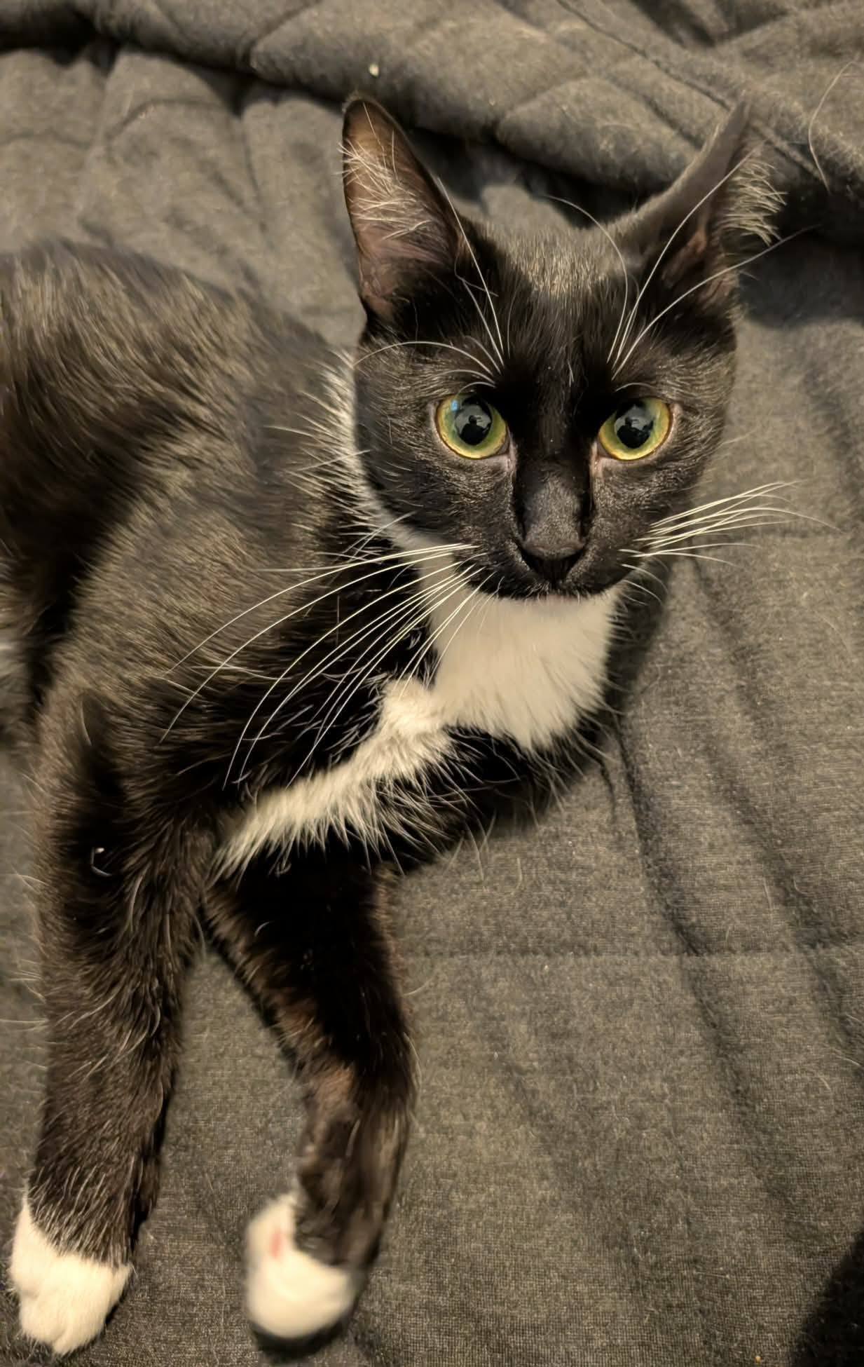 Cette adorable chatte est sociable et affectueuse.