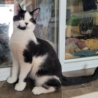 Il aime jouer, aime les humains, les câlins et ronronne beaucoup. Il se laisse manipuler facilement.