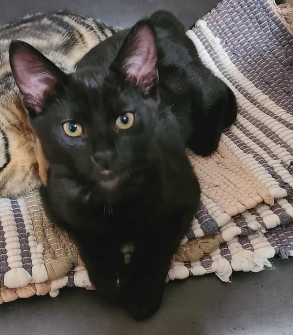Stitch est le plus gros des chatons noirs. Aucune malice, il se laisse faire pour tous les soins comme la coupe des griffes. Il adore les bisous! »