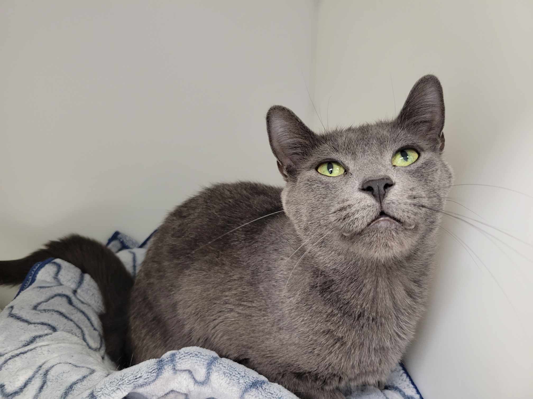 Voici Suki! Une magnifique chatte de 1 an et 9 mois, au pelage gris uni, qui ne demande qu’une chose :...