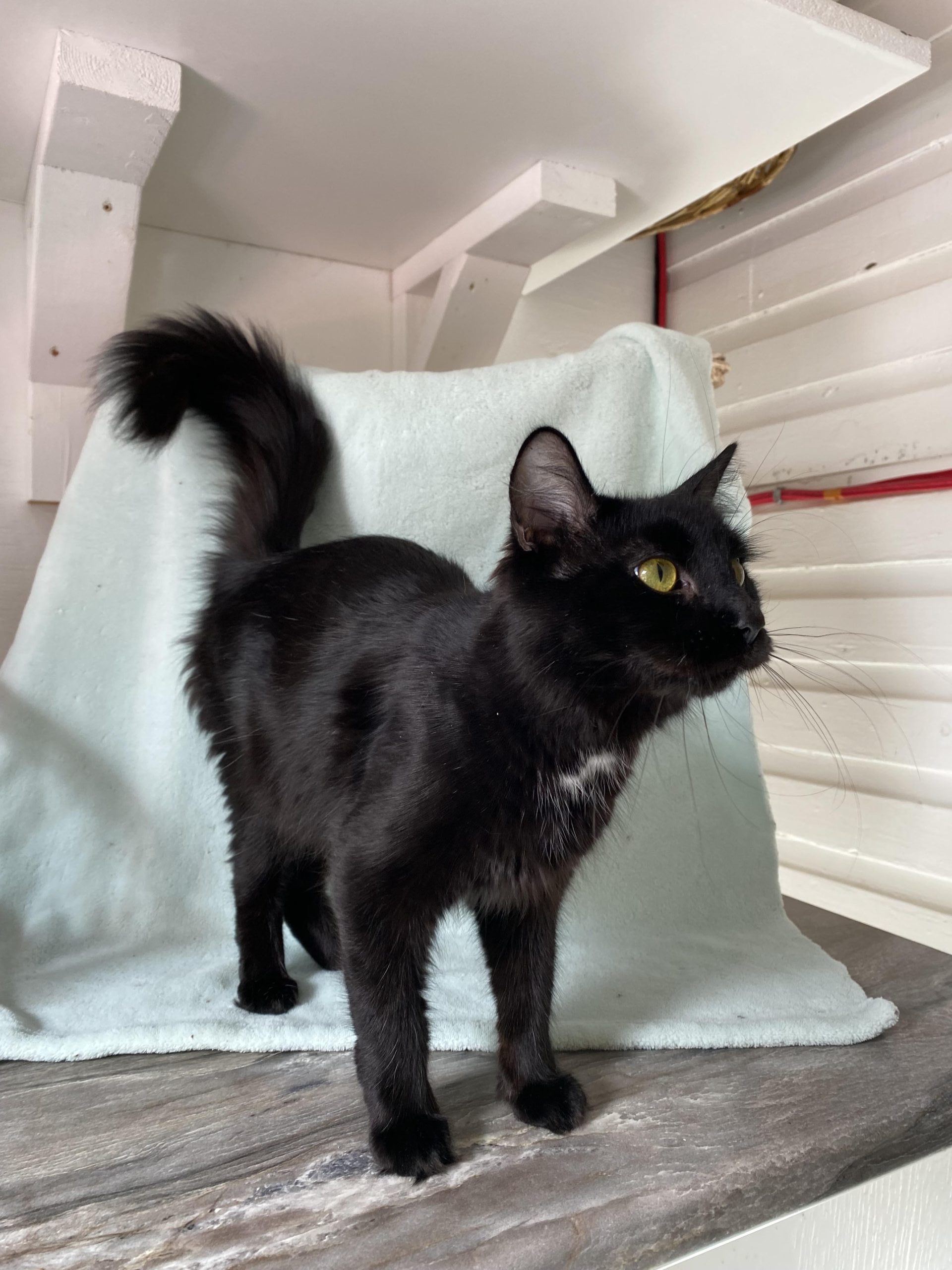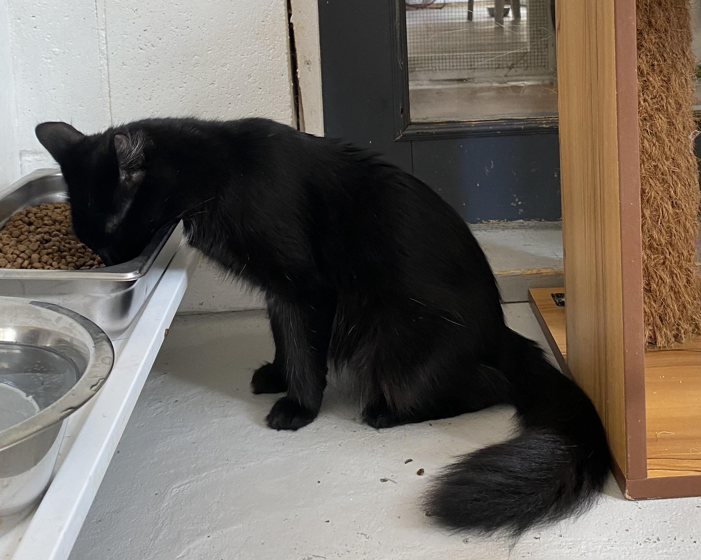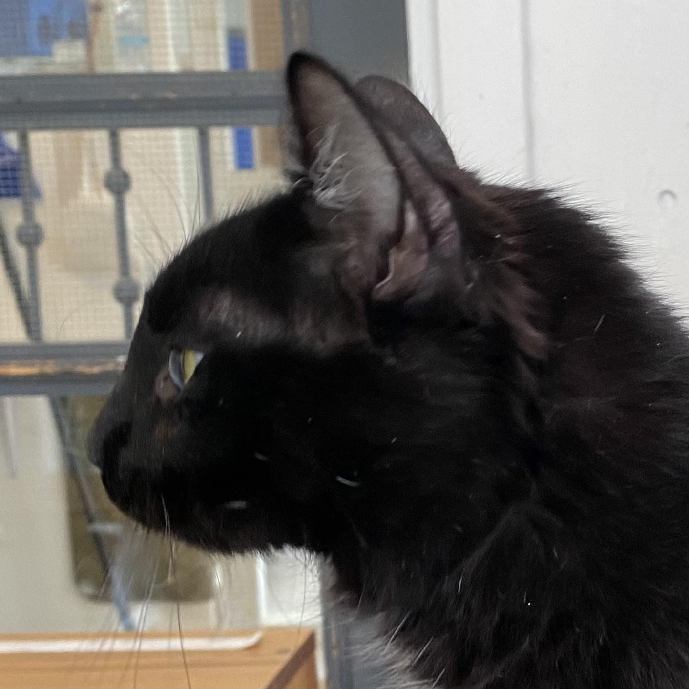une chatte au pelage noir et doux qui a récemment été amenée à notre refuge avec ses chatons Daisy, Millie, Nova et Tsar, également disponibles à l’adoption.