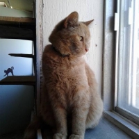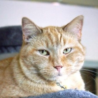 C’est un grand chat roux qui a passé ses premières années avec nous sans se laisser toucher. Notre équipe de socialisation a travaillé fort pour le désensibiliser au toucher. Récemment nous l’avions placé en famille d’accueil pour perfectionner sa socialisation et il s’était enfui. Il a été attrapé quelques jours après et est revenu au refuge.