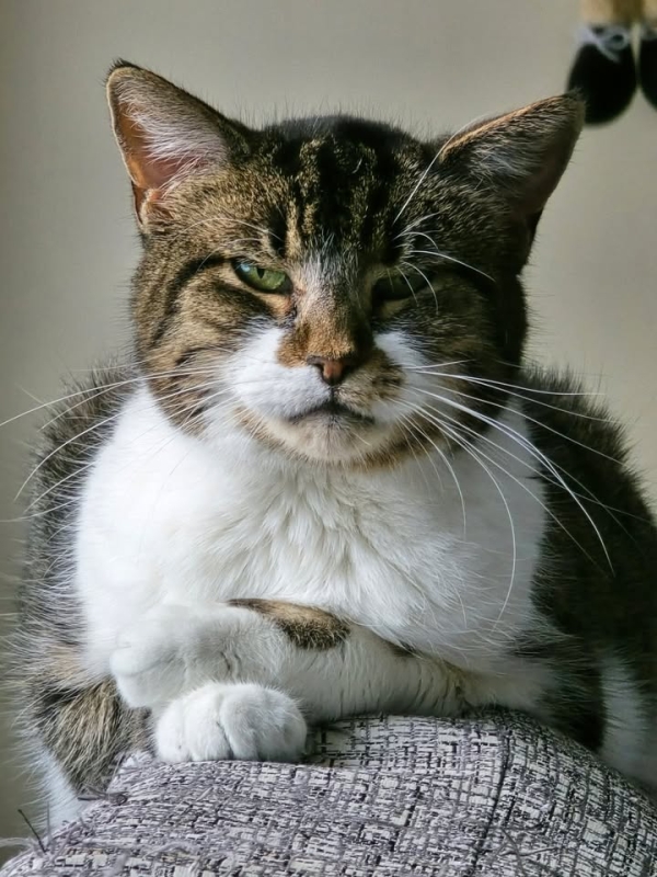 Présentement, elle vit avec plusieurs autres chats qui ne la laissent pas toujours tranquille. À 15 ans, Belle Sunset mérite un foyer doux et paisible où elle pourra profiter de repos, de stabilité et de beaucoup d’amour.