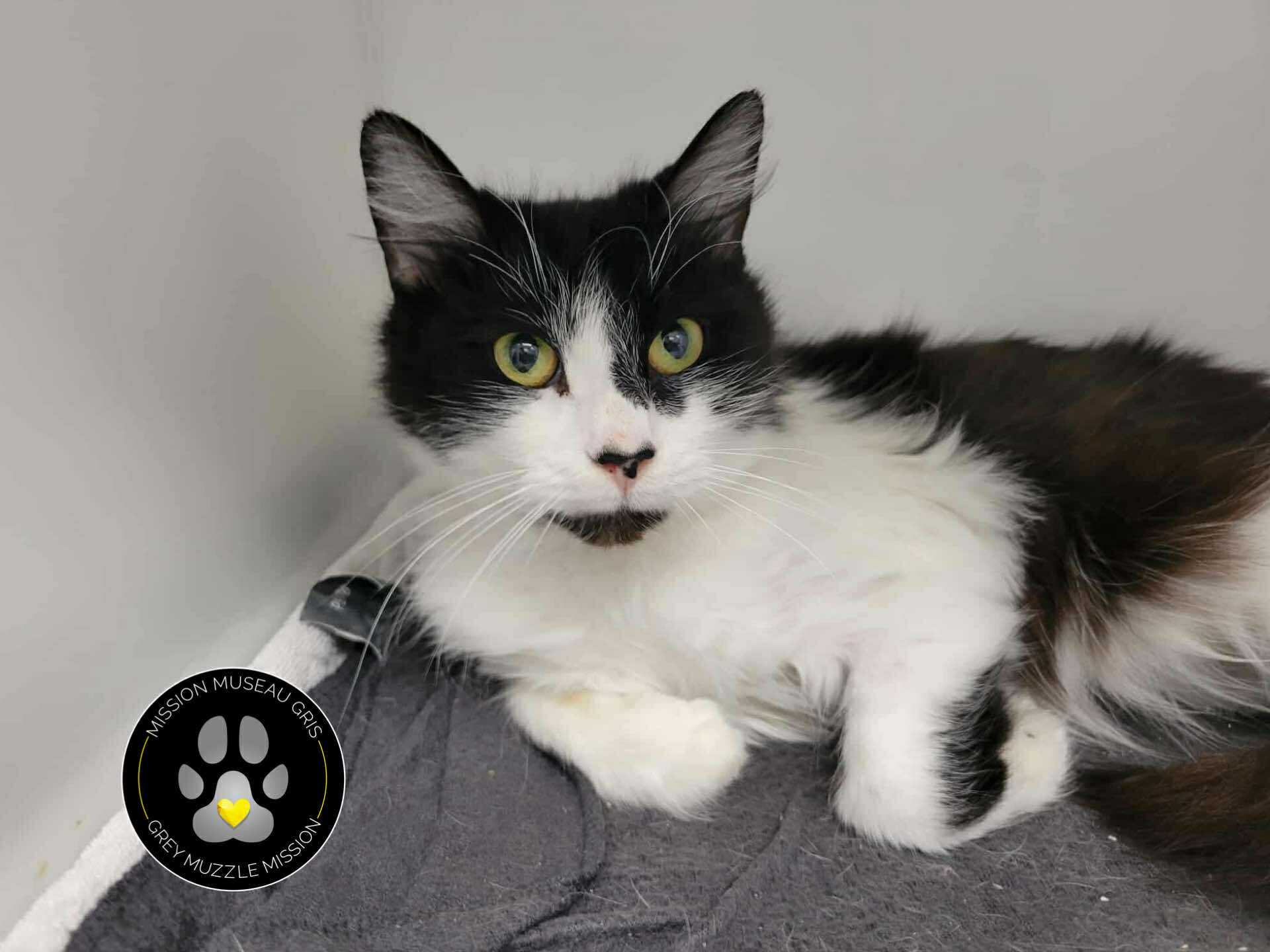 Un beau garçon âgé de 9 ans dégriffé aux 2 pattes avant. Il fait partie de notre Mission Museau Gris pour encourager l’adoption d’animaux séniors (7 ans et plus, frais d’adoption à 75$).