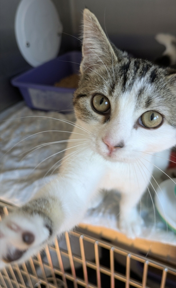Arrivée au refuge à peine âgée de 15 jours avec ses sœurs, Tux et Cali, qui ont déjà trouvé le bonheur, c’est aujourd’hui au tour de la pétillante Tabby de conquérir un cœur.