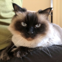 Ne vous laissez pas rebuter par son petit air grognon, Tess n’a aucune malice en elle, au contraire! Vous avez ici une chatte qui aime les câlins et les gratouilles, surtout sous le menton. Elle est de nature assez tranquille, mais elle aime tout de même jouer. Son petit plaisir coupable : écouter la télévision collée contre un ou une volontaire qui veut bien lui flatter le dos et la tête en continu. Elle cohabite également très bien avec d’autres chats.