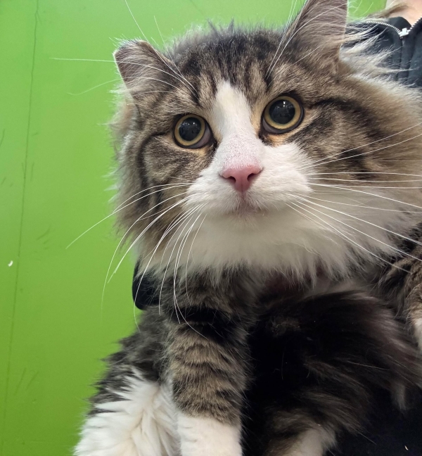 Très craintif, Tigroux a besoin d’un environnement calme et sécurisant, ainsi que de temps pour s’adapter et gagner confiance. Une famille patiente et compréhensive saura l’accompagner pour qu’il se sente en sécurité et révèle toute sa gentillesse.