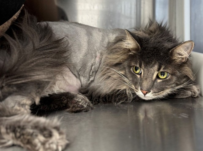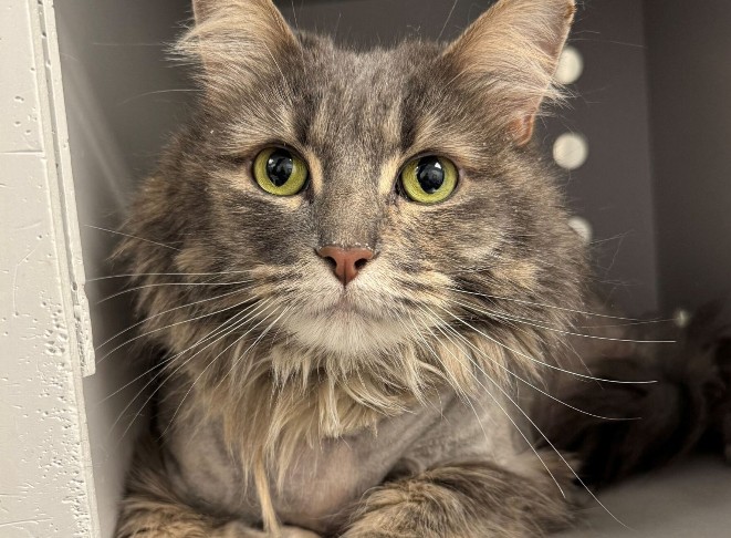 Titane est une magnifique minette au superbe pelage gris-bleu long et soyeux. Son regard d’un vert émeraude éclatant est rempli de vivacité et de curiosité. Ce trésor poilu est en très bonne santé. Notez q’un brossage régulier et/ou un toilettage périodique seront nécessaires pour maintenir son abondante fourrure en bon état.
