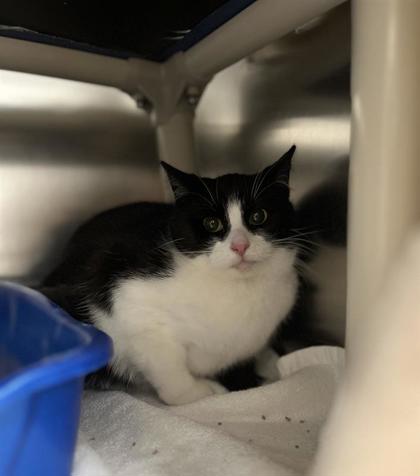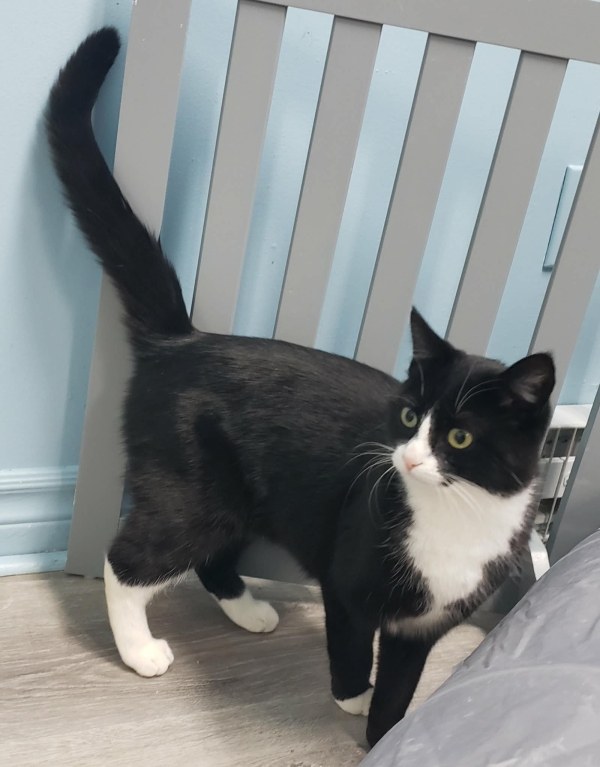 Tite-Fille est une jolie chatte noire et blanche à poil court de 9 mois, au tempérament délicat et attendrissant.