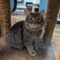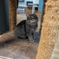 Trouvé errant avec Thalie avant d’être amené au Réseau Secours Animal en novembre 2023, Tokyo a passé toute sa vie avec Thalie qui est son amie, sa soeur ou sa mère; nous ne sommes pas certaines. Tokyo aidait Thalie avec ses bébés quand ils étaient errants.