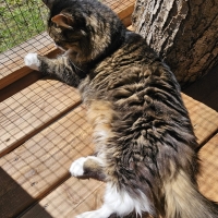 Truman est un chat calme et amical qui aime se prélasser au soleil dans notre catio extérieur. Dans son ancien foyer, il cohabitait avec un chien; au refuge, il interagit bien avec les autres chats.