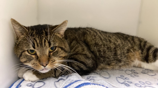 un chat mâle de 5 ans arrivé au refuge à la suite d’une vie d’errance.