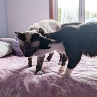 Velma est une chatte très affectueuse et joueuse avec un caractère de chaton! Elle a besoin d’un peu de temps pour s’habituer aux nouvelles personnes et n’aime pas la restreinte où se faire prendre. Mais elle ronronnera comme un moteur si vous la flattez .