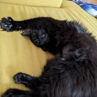 Void est un amour absolu qui aime les caresses autour de son visage et qui aime être brossée régulièrement, ce dont elle aura besoin en tant que chat à poils moyens/longs. Elle récompensera votre toilettage par le sien, car elle adore lécher les mains et les barbes!